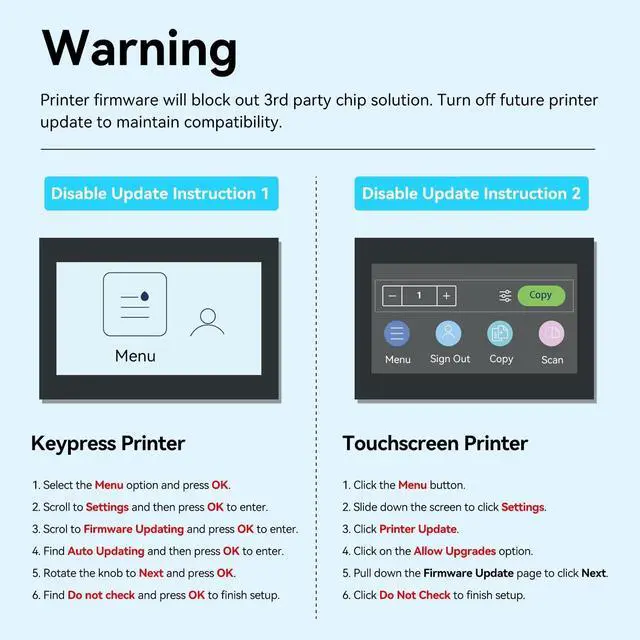 With CHIP: our 210A W2100A toner cartridges are equipped with the Latest Chips, No need to take off and install the OEM chip on 210A Toner Cartridges Set ^^