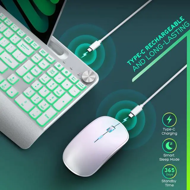 MULTIFUCTIONAL DEVICE HOLDER-The wireless keyboard and mouse combo comes with a 10.6-inch phone tablet stand to make work even easier.You can place your d