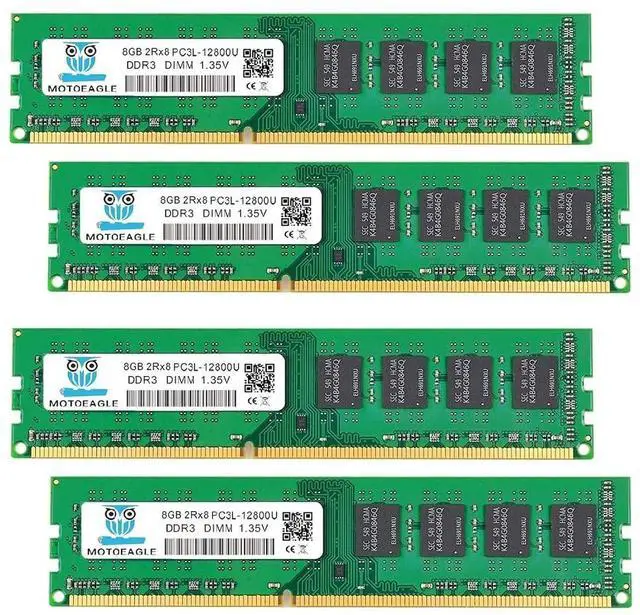 32GB DDR3L 1600MHz PC3L 12800U Kit (8GBx4) UDIMM 240-Pin Non-ECC Unbuffered 2Rx8 Dual Rank Desktop Memory, With strong compatibility and high stability with motherboards of various brands. ^^ High-Quality and