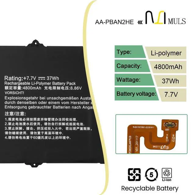 Voltage: 7.7V. 100% brand new. Up to 500 recharge cycles over the life of the battery. High-quality materials and circuit board. ^^ Replacement For LaptopFit for for Samsung Galaxy Book Go 340XDA NP340XLA NP340XLA-KA2CA NP340XLA-KA1US NP340XLA-KA3US NP340XLA-KA5US NP340XLA-KA12US XE340XDA-KA3US-RB XE340XDA-KA1US XE340XDA-KA3 XE340xda-ka1it Series Laptop ^^ Compatible with Part NumberFit for AA-PBAN2HE BA43-00399A ^^ Safety Above AllOur batteries are certified by CE, FCC and RoHS to ensure your safety, and packed with prevention measures like short circuit, overheat and overcharge protection. Our laptop batteries are made with premium materials and circuit boards to ensure performance and durability. ^^ Give Customers the