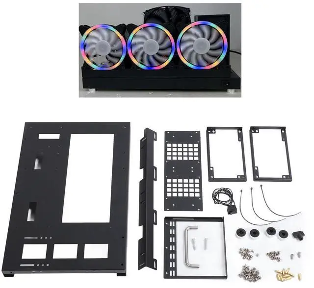^^ POWERFUL COOLING: Computer open case bracket supports 3 x 12CM fans or 360 water coolers to ensure low temperature inside the chassis.