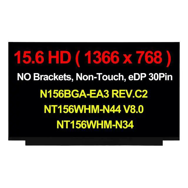 Brand New B156XTN 08.0 B156XTN 08.1 N156BGA-EA3 NT156WHM-N44 N40 NT156WHM-N34 15.6 inch IPS HD 1366X768 LCD LED Screen Display Panel Replacement 30Pin No Tabs (Non