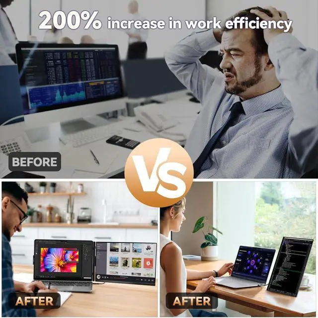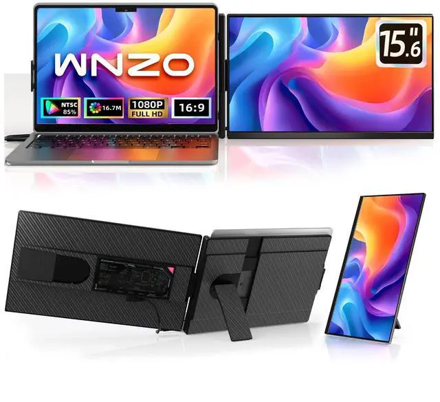 Support Modes: WNZO dual screen monitor for laptop features two practical support modes for diverse scenarios. In Backplate Mode, attach it to your laptops rear via the integrated clipits adaptive clamp secures placement without screen warping. In Stand Mode, detach the monitor, insert the 360 rotating stand, and adjust to your ideal viewing angle. This dual-mode design enables flexible, stable setup, perfectly fitting work, travel, and multitasking needs.