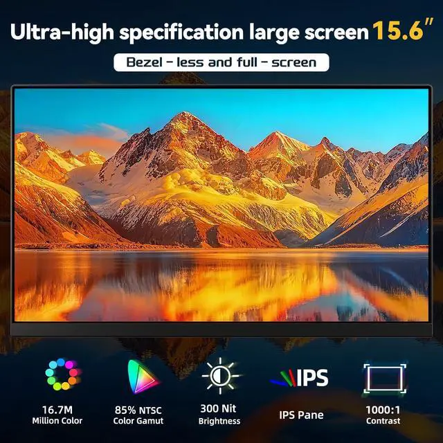 Monitor Extender: WNZO second monitor for laptop has a 15.6 -inch large screen, with 1920x1080 Full HD resolution and IPS panel for immersive top-tier visuals. Highlighted by 85% NTSC gamut, plus 300 nits brightness and 1000:1 contrast, it ensures lifelike colors, wide viewing angles, and sharp details. For video playback, image editing or creative work, its rich colors and large-screen edge elevate all visuals, enhancing your view. ^^ Ultra-Thin & Lightweight for