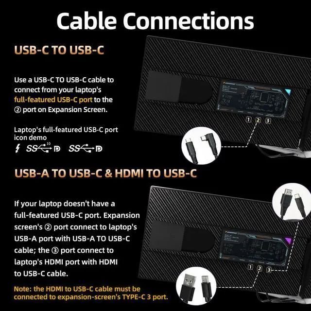 ^^ Plug-and-Play: WNZO Portable Monitor for Laptops enables seamless connectivity with 3 USB-C port (1 for HDMI to USB-C cable), plus all needed cables for instant setupno extra drivers needed.