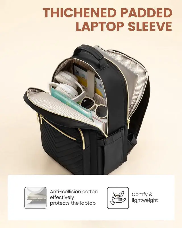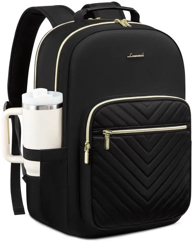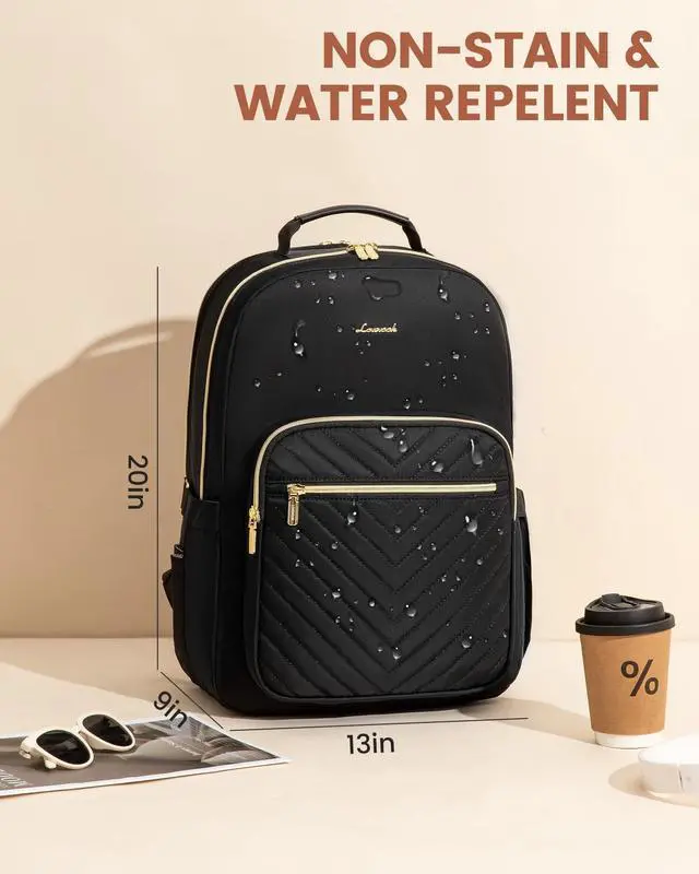 Upgraded Laptop Backpack Women: Classic V-shaped embroidery thread. Upgraded double LOVEVOOK no-slip metal zippers, water resistant Nylon fabric with polyester lining, ensures long lasting usage. Total of 4 compartments and 16 pockets for your computer, A4 folder, bottles, umbrellas, clothes, work supplies, college supplies and travel essentials.