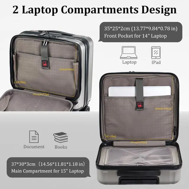 Compartments & Layered Design: Its divide front pocket designed to fit 14" tablet and main for 15" Laptop, you can easily access your electronics while on the go with two zippers for pens, sticky pads, chargers, etc.. Plus you could put a change of clothes, gloves, umbrella etc. in the third compartment. The third place with stretch strap to secure your clothes in place. So if you want a compact carry on for 2 laptops and 1-2 days daily necessities for your business trip, then this is the one! ^^ Dual Lock & with