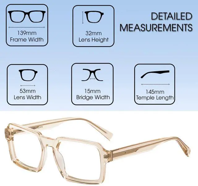 DescriptionDesigned by none other than Elton John, himself! Elton John Icon Unisex Rectangular Acetate Full Rim Designer Blue-Light Filter glassesThe Icon is indeed iconic with its bold styling and a rich colour. Strong lines and design, the Icon is certain to be noticed and admired. The Icon features signature Elton John branding. Large Size Frame142mm Frame Width52mm Lens Width38mm Lens Height145mm Temple Length22mm Bridge WidthHandmade Acetate Frame materialNon Glare Lenses with Blue Light Filter with 100% UVA & UVB, UV400 ProtectionOphthalmic Quality, Rx Ready. Prescription Lenses can be purchased & inserted by your local Optical Professional