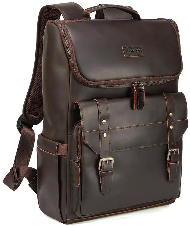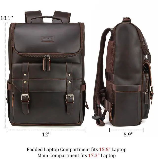 Capacity - Dimensions: 12 (L) * 5.9 (W) * 18.1 (H) inches (width does not include front pocket), weight: 3.96 lb. Features a large main compartment and a large front zipper pocket, padded laptop compartment can fit a 15.6 inch laptop, designed to protect it from shocks while traveling. The spacious main compartment fits up to a 17.3 inch laptop. It efficiently organizes your clothing, daily essentials, and electronics, which is an ideal choice for short trips and professional business travels ^^ Ergonomic Design - This laptop backpack designs with breathable mesh back padd and wide shoulder straps for superior ergonomic comfort, transfer weight off your shoulders, keeping you relaxed and easy to carry throughout all day. A luggage strap on the back makes combining luggage a breeze for convenient carry ^^ Stylish Vintage Bag - With a Multipurpose use, this bag is a perfect companion for travel, business, daily use and outdoor activities. An ideal backpack gift for anniversaries, Christmas, Valentines, Fathers Day and other occasions ^^