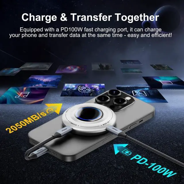 Portable Magnetic Design: FP108 2TB external solid state drives is equipped with a magnetic structure and comes with a magnetic ring, which can be easily attached to the back of your phone or other devices. This unique magnetic ring design makes it more convenient to hold and take photos or videos. Perfect for use on the go, ensuring portability and ease of use ^^