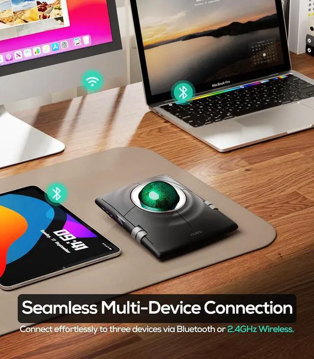 Multi-Device Connection: Connect up to three devices via Bluetooth or 2.4 GHz wireless; this track ball mouse USB wireless is compatible with laptops, tablets, and smartphones; perfec