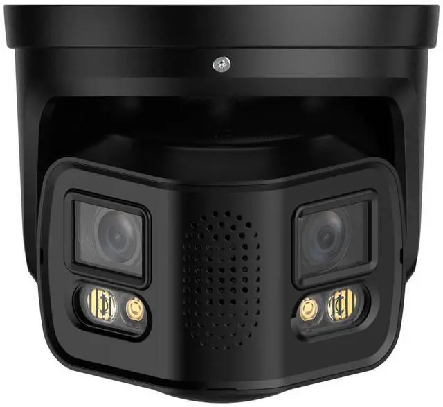 Outputs 180 wide angle splicing image. Outputs max. 8 MP (4096 1800) @25 fps. ^^ 3.6 mm Fixed-focal. Built-in warm light, and the max. illumination distance is 40 m ( 131.23 ft).
