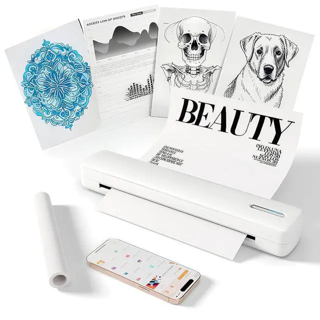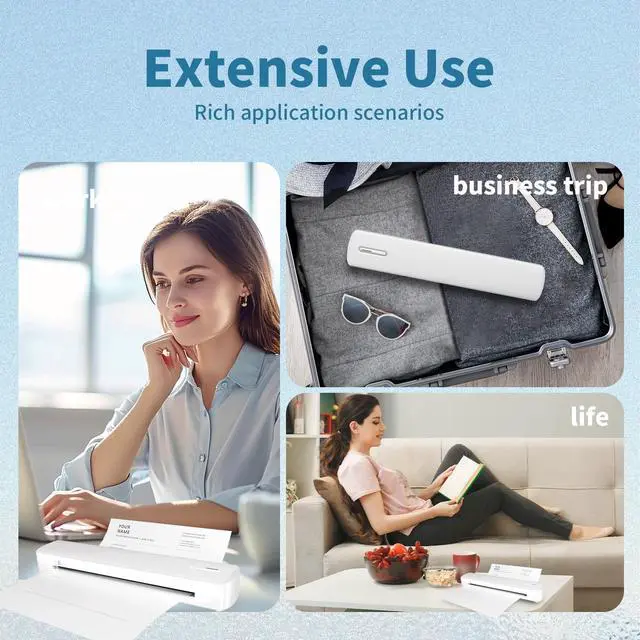 Note: This printer is compatible exclusively with thermal paper (not suitable for standard copy paper) and supports black-and-white printing only. ^^ Portable Printers Wireless for Travel -Weights only 530g with portable size, and 1500mAH large battery, ideal for travel, capable of pinting 400 sheets st once when fully charged. ^^ High Compatibility Phone Printers - This portable printer works seamlessly with laptops (macOS & Windows via USB) and smartphones (iOS & Android via Bluetooth). ^^ Multi-Size Printing Capability - This wireless portable thermal printer comes with a built-in paper bin, supporting thermal roll paper, as well as continuous and single-sheet thermal paper. The compact wireless printer also accommodates 5 thermal paper sizes: 8.5" x 11" (US Letter), A4, and A4 Tatoo Papermeeting most of your printing needs. ^^ Ideal gift - Whether for birthdays, holidays, or as a thoughtful gesture, the C80 delivers convenience and reliability, making it a gift thats sure to be appreciated daily. deal for students juggling assignments on campus, frequent travelers needing on-the-spot document prints, or busy professionals managing tasks on the go, this compact device fits seamlessly into any lifestyle.