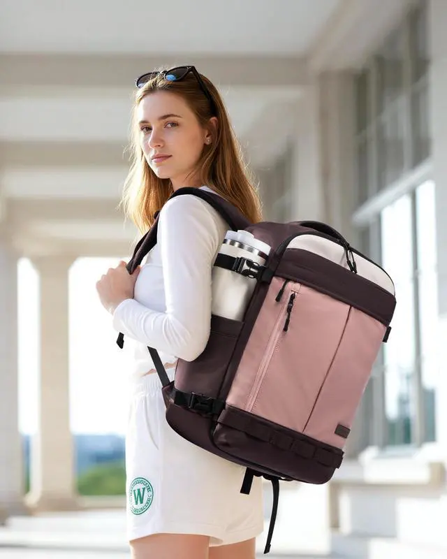 Keep clean and worn items separated for a more organized, stress-free packing experienceideal for airplane travel essentials. ^^ Security&TSA-FriendlyThe rear anti-theft laptop compartment keeps your device safe while allowing quick access during airport security checks. No more fumbling at checkpoints move through security smoothly and confidently. ^^ Comfortable for All-Day TravelBreathable padded straps and an adjustable chest buckle reduce shoulder strain. The luggage strap slides over your suitcase handle, making this carry on bag a smart choice for hands-free airport transfers and daily commuting.