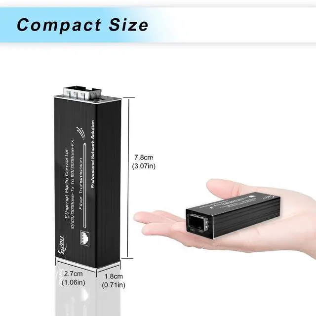 Design: Smaller than typical mini media converters (only 3.11 x 1.06 x 0.71 inches), making it ideal for space-constrained setups like IP camera housings, NVRs, or embedded installations. ^^ Durable Aluminum Casing with