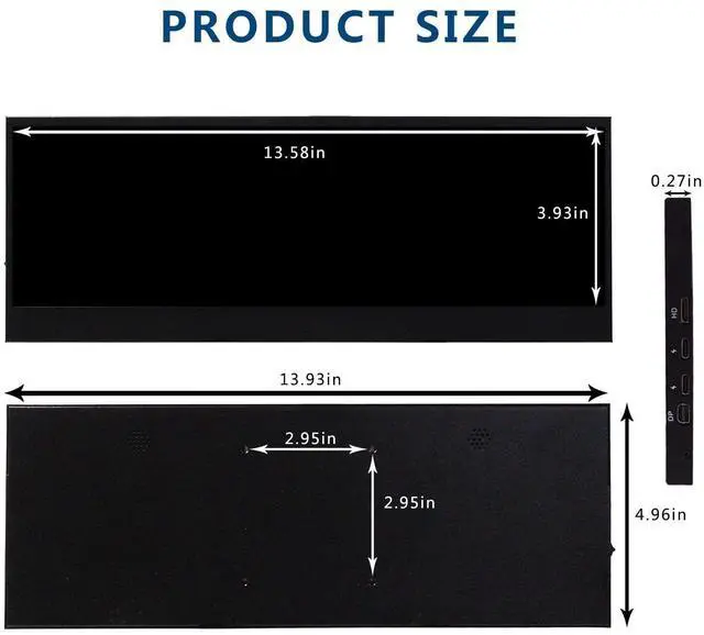 LCD Aspect Ratio: > 3:1 ^^ 4K Stretched LCDWide demension, 14 inch touch monitor with 3840x1100 high resolution, supports R, brings you vivid and clear image, enjoy better visual experiment ^^ Multiple InterfaceSupports /type-c/DP video input; plug and play, it's easy to use ^^ Touch FunctionCapacitive touch function, 10 points multi-touch technology makes you convenient to operate, allows you to swipe, scroll, select, zoom in, zoom out, and move a cursor in 3-5 ms ^^ Widely ApplicationFit for DIY project, can be used as an extend monitoring display for pc/laptop/computer/game cabinet while working/gaming; Also can be used as a dash panel for racing/driving sims