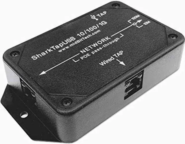 The newest member of the SharkTap family allows you to sniff an Ethernet link without using an Ethernet port on your PC. This is ideal for newer portables without an Ethernet jack, but is also a benefit if you don't want to switch a port between network and debugging purposes.