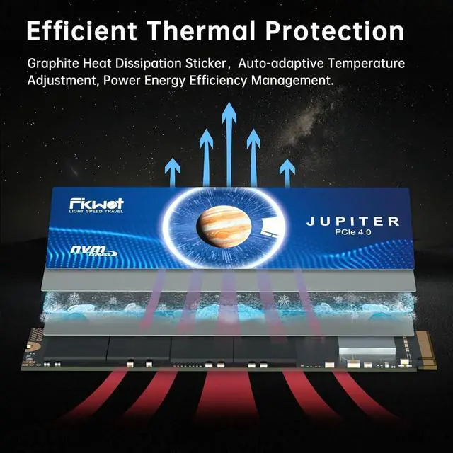 ^^ [Excellent Thermal Management]: FX991 NVMe SSD 4TB is equipped with Auto-adaptive temperature adjustment and power efficiency management. It can intelligently adjust the NVMe SSD heating temperature and power consumption control, which can reduces the burden on the device and extends the battery life of laptops and other devices. We have equipped M2 SSD 4TB with high-conductivity graphite heatsink. Under high load conditions, the internal ssd reading speed can still be close to the peak. ^^ [HMB and