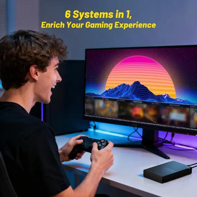 6 Game Systems in 1Kinhank 4TB gaming hard drive play instantly with 75,000+ supported retro games, including200+ game collections,turn your PC into game console instantly. Enjoy Arcade, home console, and classic PC favorites,relive arcade memories.Easily add or remove ROMs to customize your game library.