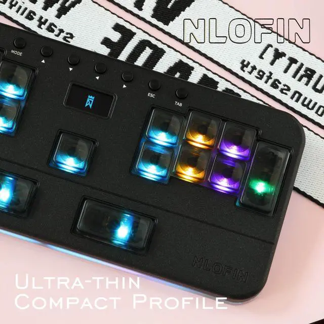 ^^ HOT-SWAPPABLE & LOW-PROFILE: Features hot-swappable sockets (3/5-pin compatible) for easy switch changes without soldering. The ultra-slim, ergonomic design (18mm) and PBT keycaps reduce wrist strain and resist wear.