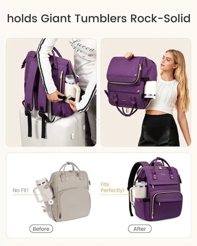 UPGRADE OVERSIZED BOTTLE HOLDERCarry your 40 oz cup in the side without worrying about it falling out. Backpack with stanley cup holder. Never Leave Your Stanley Behind! Securely fit your massive Stanley Quencher or favorite water tumbler. Stay hydrated effortlessly. Stanley cup holder, stanley cup backpack, stanley cup accessories. ^^ HUGE CAPACITY + EASY-ACCESSLOVEVOOK backpack purse for women uses a rectangular frame opening design to maintain large capacity and facilitate your quick access. It opens on top to give you easy access to everything. Stands up by itself when looking for documents.