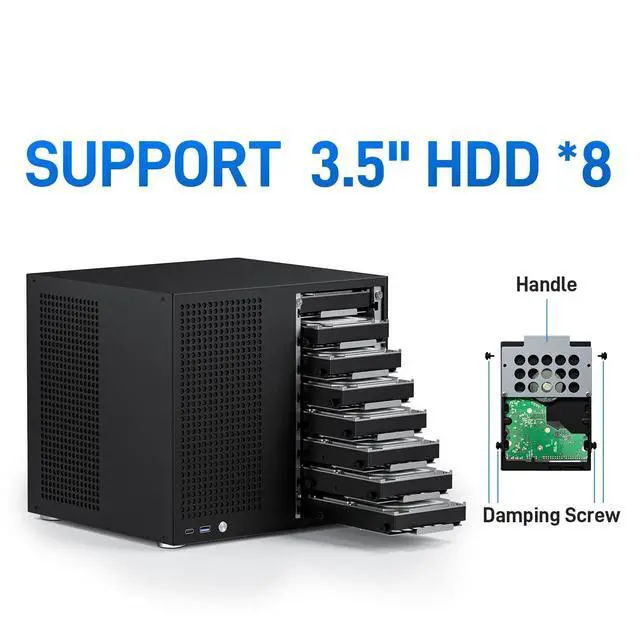 NAS Case: Aukuoy Dual-Chamber NAS PC Case Supports up to 8 hot-swap 3.5" HDD bays + 2 dedicated 2.5" SSD mounts for massive, organized storage. Magnetic front panel for easy drive access. ^^