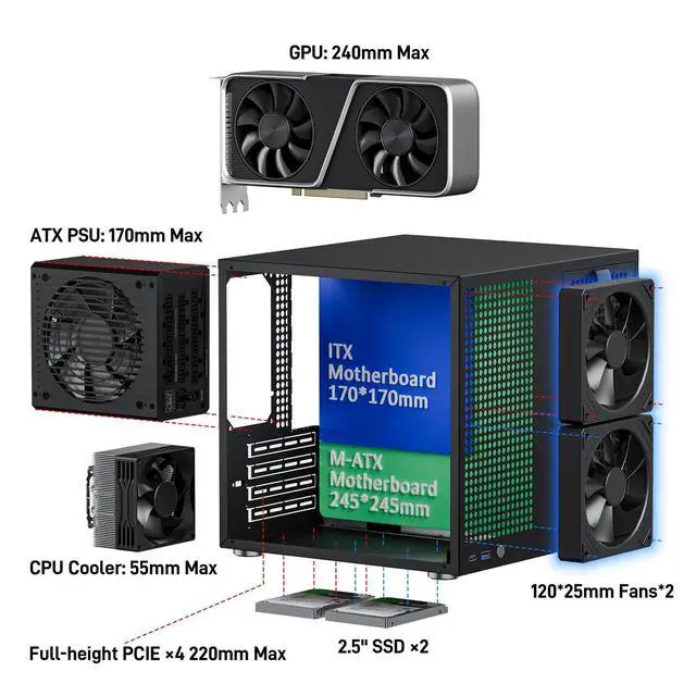 ^^ Efficient Heat Dissipation: 2x120*25mm fan mounts in both HDD and motherboard compartments form independent air channels, keeping internal temperature stable and protecting components. ^^