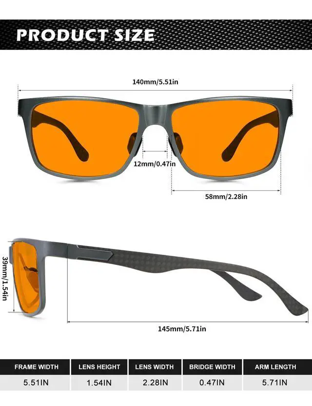 ^^ Premium Temple Material: With superior Al-Mg and carbon fiber composite temple, this type of blue light blocking glasses for men is ultra-light than pure metal frame, also more sturdy. No more worries about broken temples. As more suitable for anyone who often work or play games by the computer, do not miss this pair of practical and classic blue blocker glasses. ^^ Take Care of