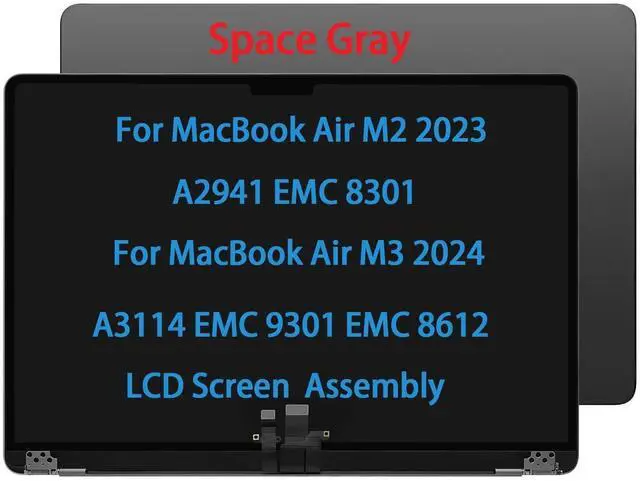 Compatible Model: for MacBook Air M2 A2941 EMC 8301 M3 A3114 EMC 9301 EMC 8612 MQKU3LL/A MQKV3LL/A 2023-2024 661-34701, 661-34702, 661-34704, 661-34705, 661-40257 lcd screen replacement display assembly