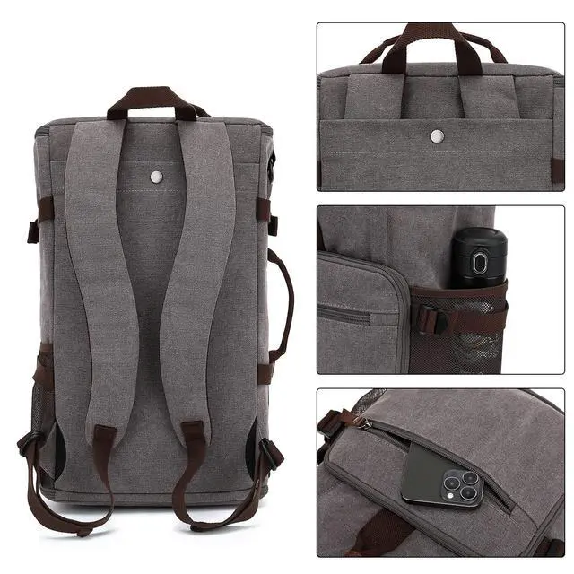 ^^ Quality MaterialMade of Vintage canvas, it is durable, sturdy, skin-friendly and easy to clean or wipe. Adopt SBS professional zippers and thick, padded, breathable pads, provide you strong back support and release shoulder burden. Handle strap and shoulder strap are light and steady with a long-time service. ^^ Functional Design4 carry ways (Backpack/ Shoulder Bag/ Crossbody Bag/Handle Bag). It has an adjustable long strap suitable for every body shape. Backpack straps can be hidden when you use it as a shoulder bag. You can convert the bag freely and easily to fit your different needs.