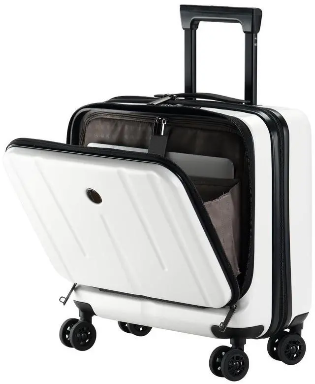 16 Inch Carry On Luggage with 2 Compartments for 14 & 15 Laptop, 16.14*8*17.12 Rolling Briefcase, Lightweight Hardshell ABS+PC Suitcase with Spinner Silent Wheels, for Business Trip, Milky White