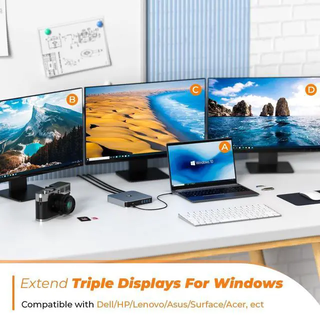 & ChromeOS: Works seamlessly with laptops having full-featured USB-C or Thunderbolt 3/4/5 ports, including 2016-2025 MacBook Pro/Air, Mac mini M1/M2/M2 Pro/M4/M4 Pro, Dell Latitude 5480/XPS 15, HP Elitebook 800 G4, Lenovo Yoga 910, Surface Pro 7, etc.
