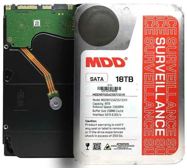 MDD (MDD18TSATA25672DVR) 18TB 256MB Cache 7200RPM SATA 6.0G b/s 3.5" Internal Hard Drive designed for heavy duty 24/7 operation. It is perfect for Surveillance System, CCTV DVR & Desktop computers (PC/MAC). The MaxDigitalData 18TB hard drive provides an enormous 18TB capacity, 256MB Cache and 7200rpm rotation speed to deliver a greater level of power efficiency and quiet operation for energy-conscious, environmentally-friendly computers. 18TB of capacity to store up to 18, 000 hours of HD video (depends on CCTV System. )Built for Surveillance systemHeavy workloads No problem. Smooth Video record & playback alwaysDesigned for heavy duty 247 operation