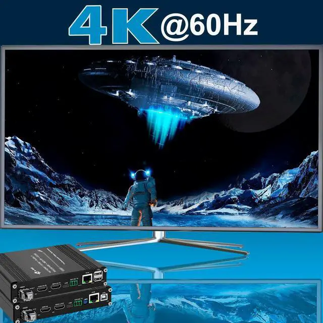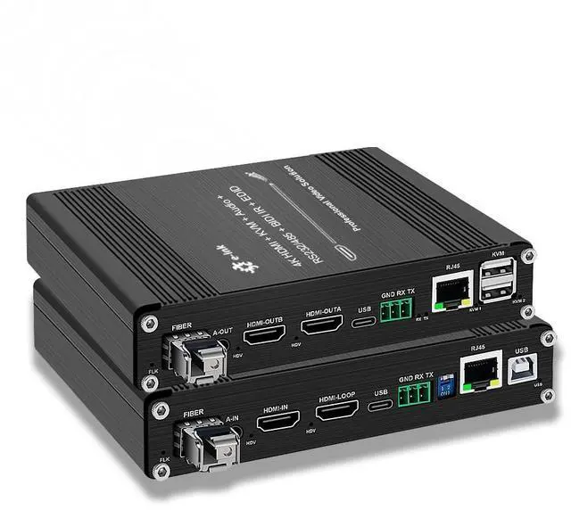 OverviewThe Elenzk HDMI KVM Fiber Extender delivers professional 4K@60Hz video transmission up to 20km via single-mode LC fiber. With built-in USB-based KVM, Ethernet, RS232, audio, and IR, this device is designed for industrial, control room, and long-distance AV signal distribution. Stable performance and easy deployment make it ideal for mission-critical environments. Features Supports HDMI 2.0 b, HDCP 2.2, DVI 1.0 Resolutions up to 4096x2160@60Hz 20km transmission over single-mode fiber (LC/SFP) USB-B to USB-A for KVM control RS232 bidirectional communication HDMI loop-out (TX) and dual output (RX) 3.5 mm audio I/O, IR pass-through 10/100M Ethernet (TCP/IP) DIP switch selectable settings Industrial design with wide temperature toleranceSpecificationsVideo: HDMI 2.0 b, up