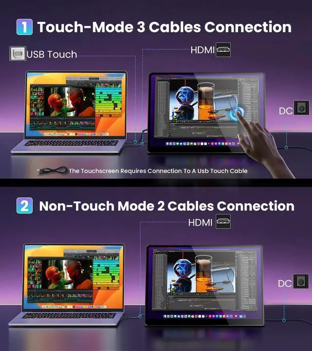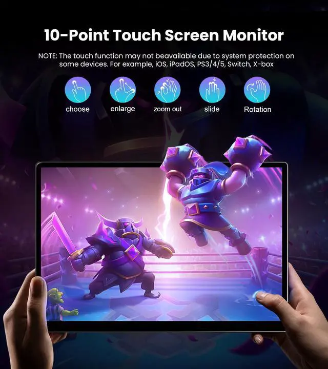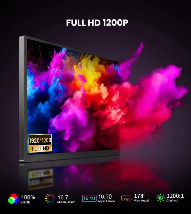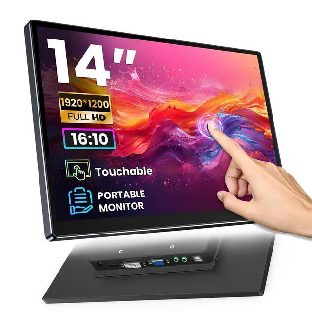 14" PORTABLE MONITOR FOR ON-THE-GO USE - This 14-inch monitor delivers excellent picture quality in a compact form factor, with 500 nits brightness, 100% sRGB color gamut, Full HD resolution (1920x1200), and HDR technology. Thanks to the IPS panel, colors are precise and viewing angles are extremely stablethe entire screen content remains clear and consistent without color shift from up to 178 degrees. Work or play anytime, anywhere with crisp, detailed visuals. ^^ 10-POINT TOUCHSCREEN WITH PLUG & PLAY - The monitor supports capacitive 10-point multi-touch for fast and accurate control.