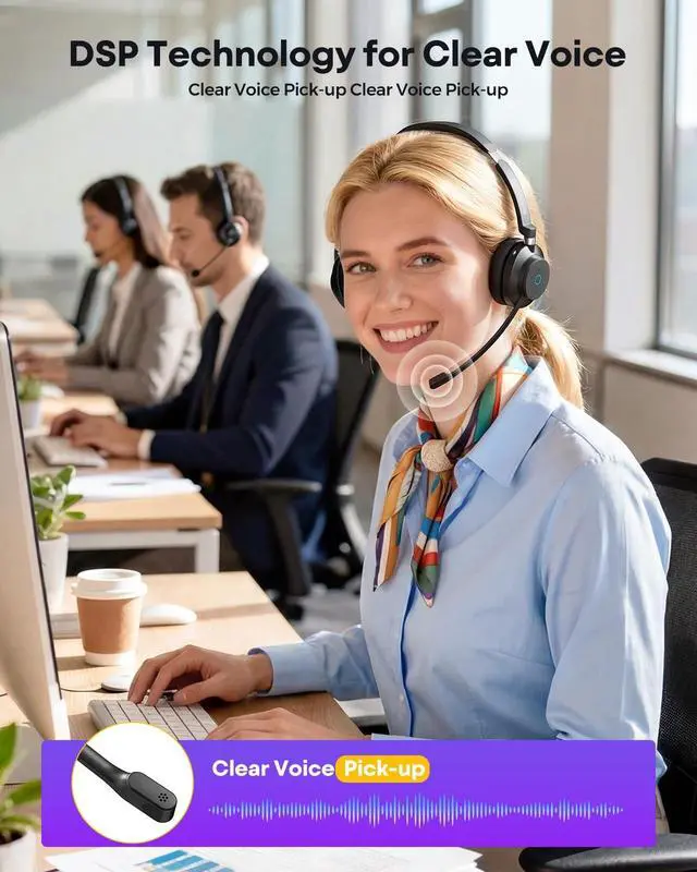 ^^ Upgraded Charging Base Design The newly upgraded charging base allows you to simply place the wireless headset on the base to start charging and pick it up when you are ready to use it. This ensures your headset stays fully powered and ready to take calls throughout the day. The built in dongle storage securely holds the USB dongle to prevent loss, while saving USB ports on your computer. With plug and play convenience, a single USB port is all you need for charging and instant connection. ^^ Up to 45 Hours Battery LifeThis computer headset with microphone supports fast charging, delivering up to 45 hours of working time with just a 2 hour charge.
