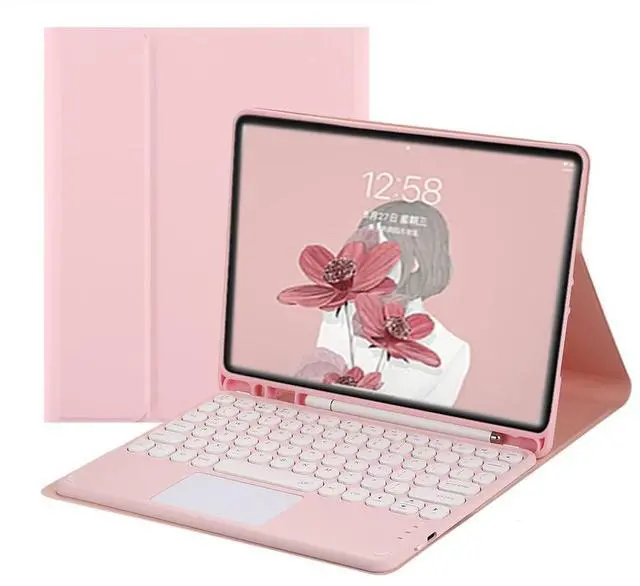 Touch Keyboard Case for Samsung Galaxy Tab A11+ Plus/ Tab A9+ Plus 11 Inch (2025/2023) Case with Touchpad Detachable Color Keyboard Cute Round Key, Pink