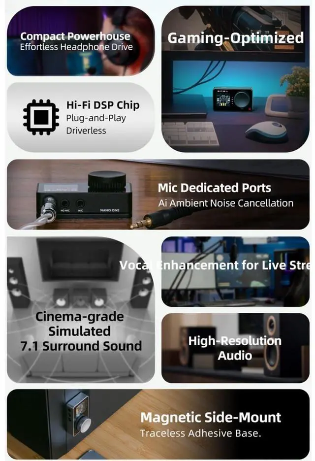 Four-Mode Professional Audio: Featuring four modesMusic, Game, 7.1 Virtual Cinema, and Voice Enhancementto meet diverse needs such as daily music listening, e-sports gaming, immersive movie watching, and
