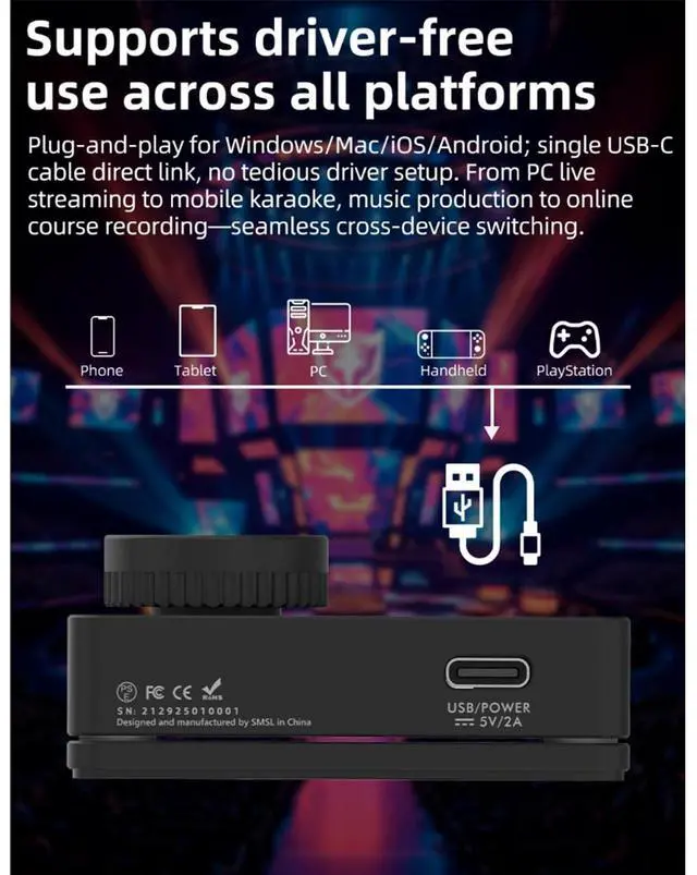 Plug and play without drivers for all platforms: Supports all systems including Windows, Mac, iOS, and Android. Connects directly with a single USB-C cable, eliminating the need for complicated driver installation. Adaptable to various scenarios such as live streaming, karaoke, and music production. It also boasts a powerful 20mW @ 600 output, easily driving high-impedance devices. Enjoy a stable and powerful sound experience without complicated settings.