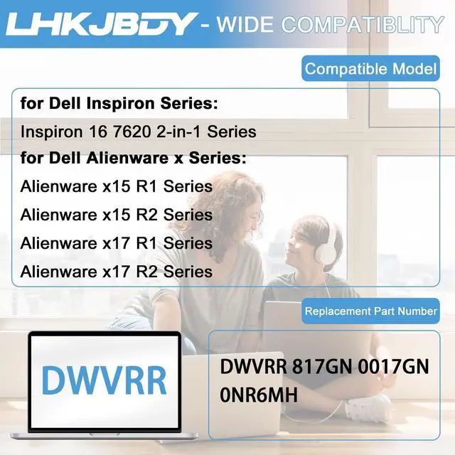 Compatible Laptop Models: DWVRR battery fit for Dell Inspiron 16 7620 2-in-1 Series; fit for Dell Alienware x15 R1 Series; fit for Dell Alienware x15 R2 Series; fit for Dell Alienware x17 R1 Series; fit for Dell Alienware x17 R2 Series ^^