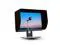 Install: 1. Opening the hood itself and put the middle part of it on the top of screen. 2. Making sure the two block strips on each side of the hood stuck to both sides of screen edges. 3. Apply the hood to fit the screen, and make sure the elastic band applies along the lower side of the screen. 4. Horizontal straightening the two belts behind the hood and joined with velcro. 5. For calibration, open the cover and install the sensor.