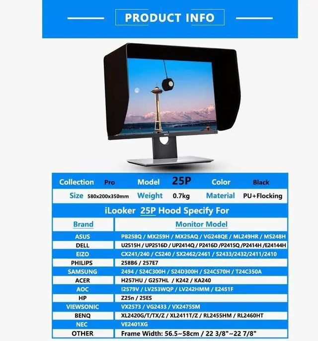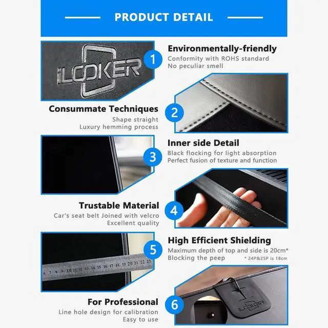 P-BlackFeatures: Use iLooker monitor hood make the screen more realistic and more clear. Eliminate effect of ambient light and reflection. Reduced the interference of ambient light can make screen color rendering more accurate to meet the needs of professionals. Reduce brightness of display can obtainthe same or even better visualization. Eye irritation will be reduce. At the same time, it can reduce energy consumption. Privacy of the leak on the display. Display light disturb others rest in the evening. Surrounding environment affect powers of concentration. Too much dust on the screen affect the visualization. Use iLooker monitor hood means no worries above no longer.