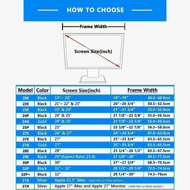 Frame Width: 22 3/8"-22 7/8"( 56.5 - 58.0 cm)Monitor