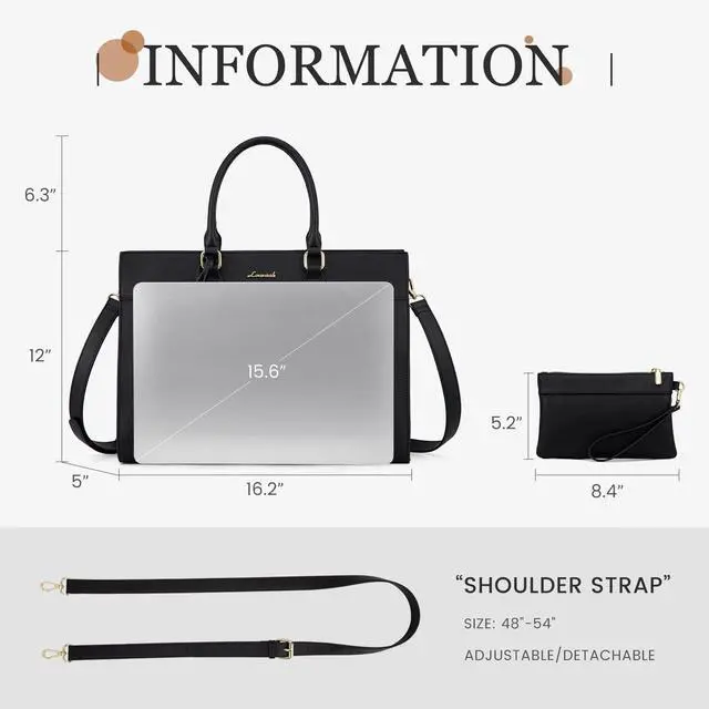Each pocket is strategically placed for easy access and efficient organization ^^ One Bag Fits All Occasion This computer bag for women comes with adjustable and detachable shoulder straps and can function as a handbag, shoulder bag, or crossbody bag, making it suitable for work, business trips, meetings, college, shopping, or daily use ^^ Ideal Gift Choice Its versatile look pairs well with different outfits. The tote bag's timeless design makes it a perfect gift for occasions such as anniversaries, birthdays, Mother's Day, Valentine's Day, and Christmas ^^ Stylish Tote BagThe Lovevook laptop tote bag for women is a stylish and functional work companion, serving as both a laptop bag and a spacious work tote.