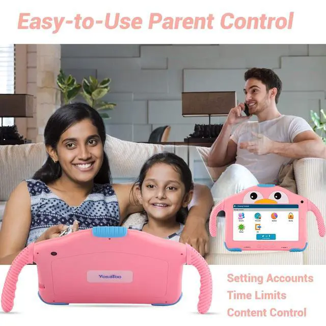 Protection Screen: Yosatoo kids tablets for kids adopts a 7 inch HD screen display. It can automatically adjust the brightness to a comfortable reading experience. Kid tablet comes with penguin handle case. The special design is not only protect screen against drops or bumps, but also well for kids hands free viewing or carrying everywhere ^^