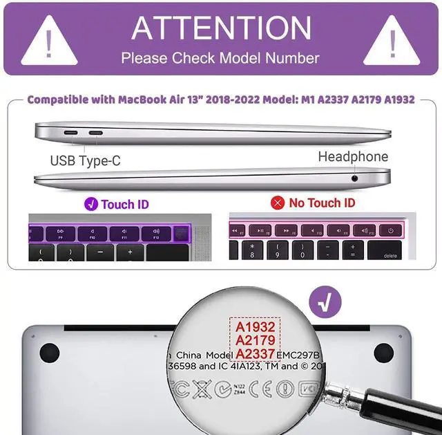 Compatibility: Only compatible with New MacBook Air 13 inch 2022 2021 2020 2019 2018 Release with Retina Display and