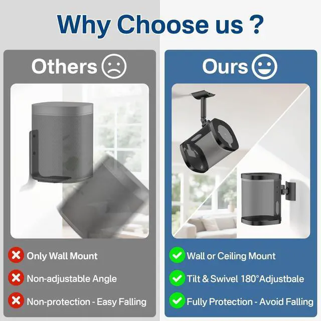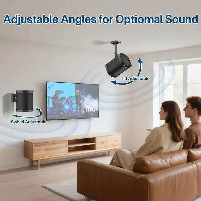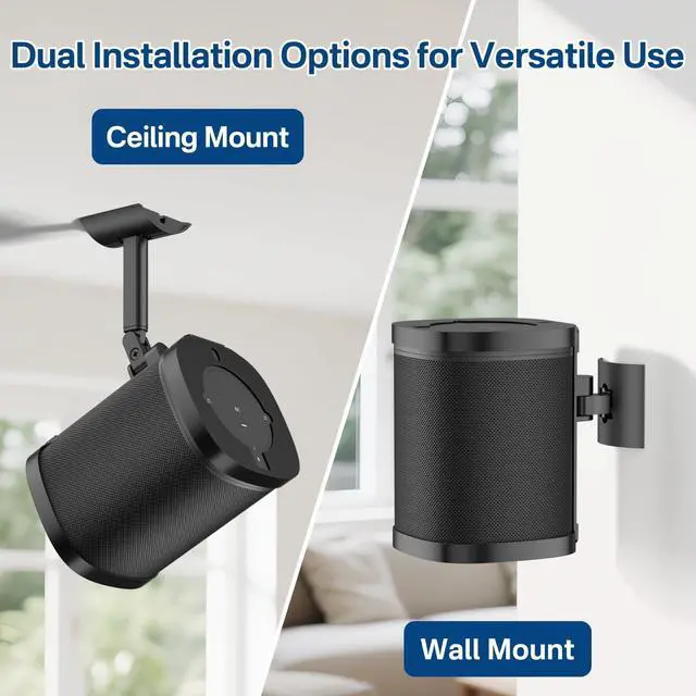 Flexible Wall & Ceiling Mounting: For the versatile Sonos one mount supports both wall and ceiling installations. Whether you prefer for Sonos one wall mount bracket or ceiling shelf, this dual-mount design adapts to your space while keeping controls accessible. ^^ Adjustable Angles for