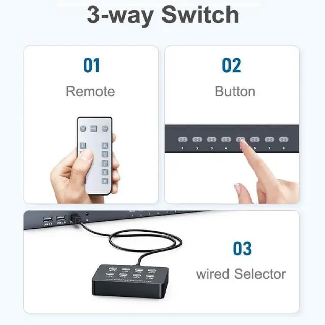 HDMI KVM Switch: Control up to 8 computers with one set of monitor, keyboard, and mouse. Share USB devices such as printer, scanner, and USB flash drive easily. Ideal for saving workspace and improving efficiency ^^ 4K