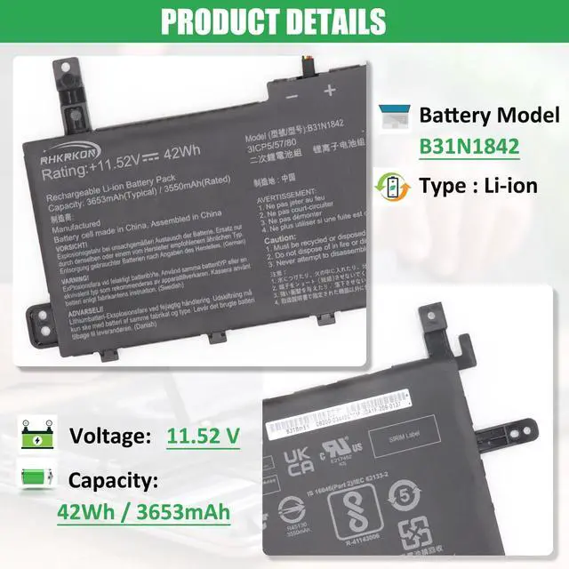 COMPATIBLE PART NUMBER: Battery B31N1842 0B200-03440000 ^^
