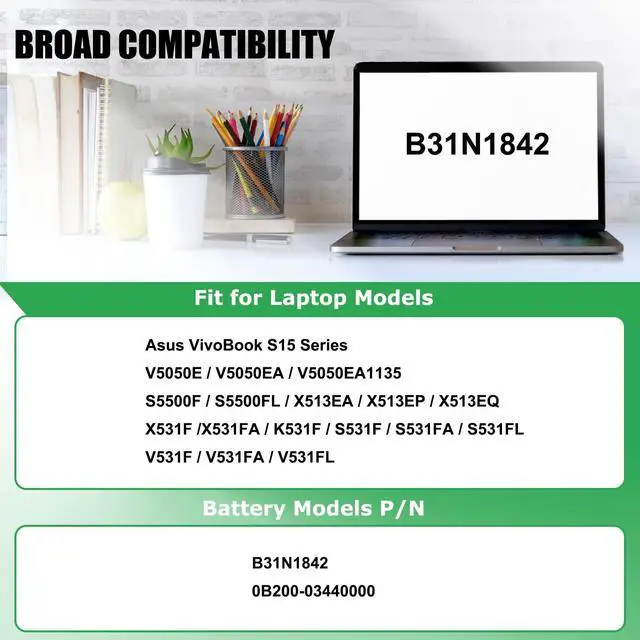 COMPATIBLE LAPTOP MODELS: For ASUS VivoBook S15 X513EA X513EP X513EQ X531F X531FA K531F S531F S531FA S531FL V531F V531FA V531FL S5500F S5500FL V5050E V5050EA V5050EA1135 Series ^^